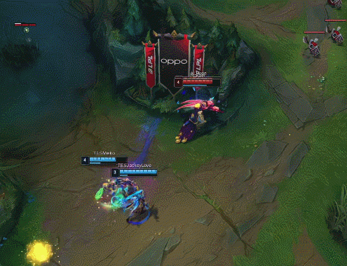 [16:00]NOC中路关灯飞脸韦鲁斯却被安妮狗熊拍脸反杀,妮蔻收掉残血韦鲁斯,双方打出1换1,AL下路放出先锋撞掉TES一塔。