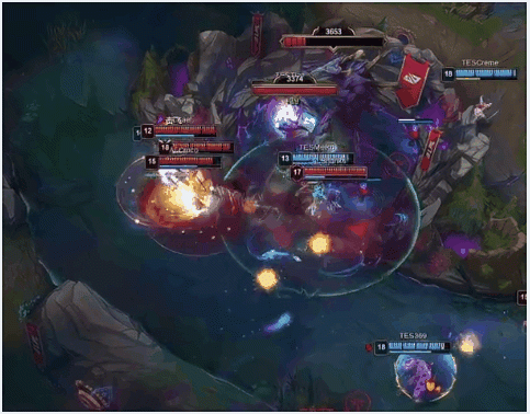 蓝色方TES:369奎桑提、Tian梦魇、Creme阿卡丽、Jackeylove卡莉丝塔、Meiko妮蔻