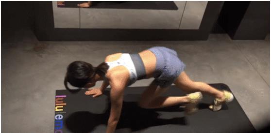 只见多多躺在垫子上,双头做抱头姿势,双腿在空中做等自行车的姿势,看起来很累,额头已经开始冒汗了,但她速度很快,一点也没有停下的意思。