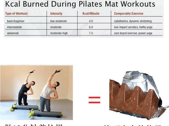 并且,在油管上有人专门做过普拉提棒的运动测试:练习10分钟所消耗的卡路里=一块巧克力。