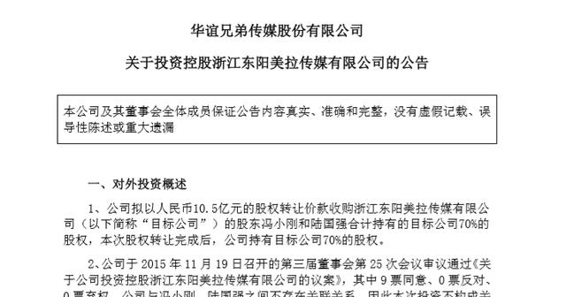 当影视行业发展一片大好,华谊兄弟口袋里有了钱,那是玩的越来越大。