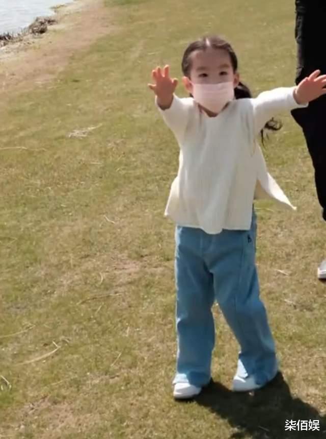 吴中天十分细心,当女儿踮起脚尖沉浸在与蝴蝶互动的欢乐中时,为了防止女儿摔倒磕到墙,吴中天下意识地就将手臂伸开了,时时刻刻都在保护女儿。