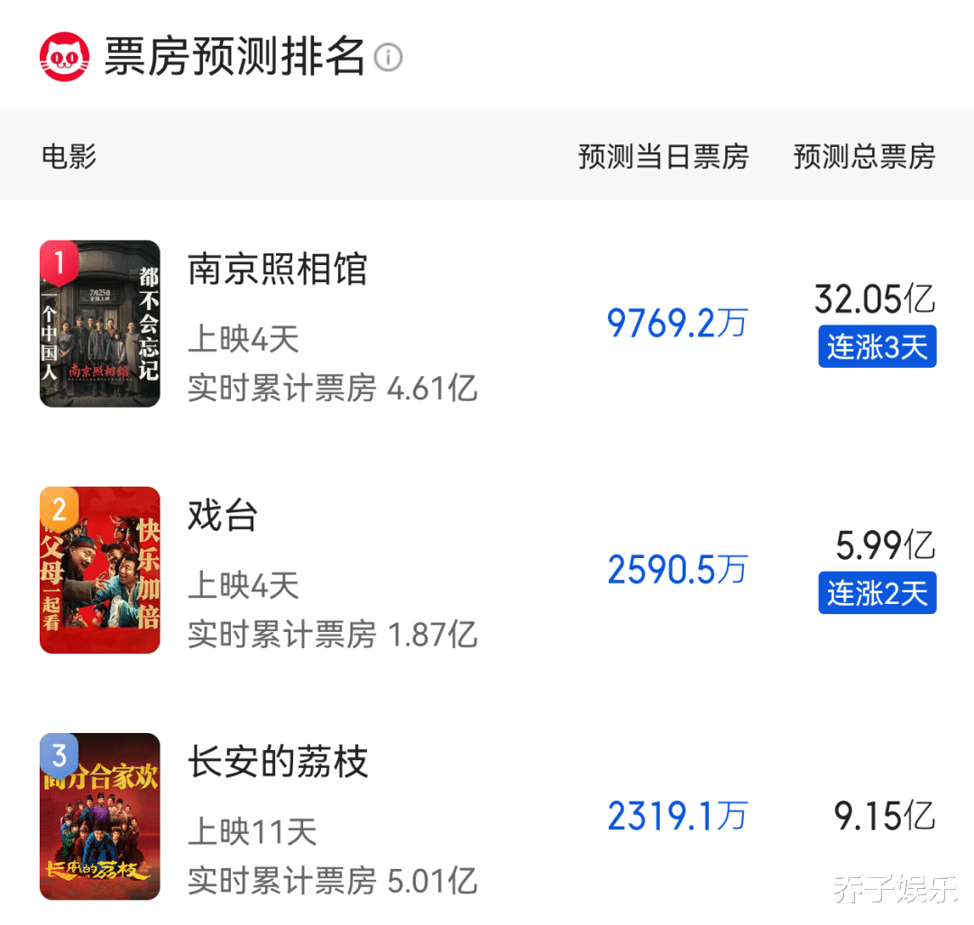 在竞争如此激烈,神仙打架的局面里,上映3天即砍下1.76亿,第四天单日票房预测还能逆袭大鹏的《长安的荔枝》,总票房预测飙升至5.99亿,《戏台》凭什么?