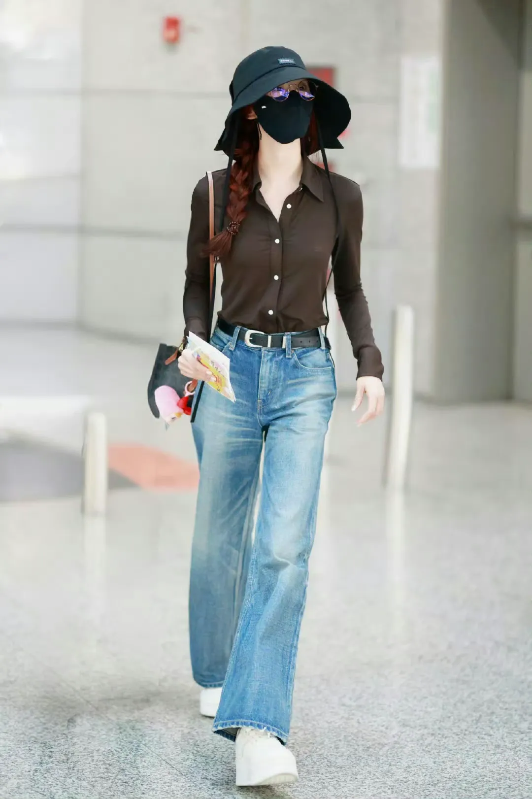 刘诗诗从小学芭蕾舞,拥有优雅的天鹅颈和出众的仪态,为她的穿搭加分不少。刘诗诗此次机场穿搭,将棕色衬衫、蓝色直筒牛仔裤、白色厚底鞋以及棕色心形单肩包这几种单品巧妙地组合在一起,既展现了她的时尚品味,又凸显了她独特的个人风格。