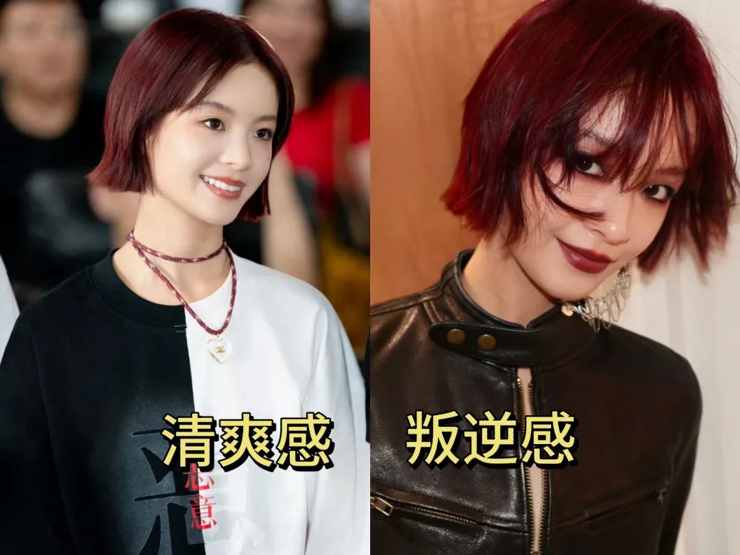 李庚希换了短发之后,满满地清新少年感!染了红发之后,可塑性更强了!直发中分,清爽少年感;而做了造型,搭配烟熏妆和红唇,则是叛逆摇滚感。