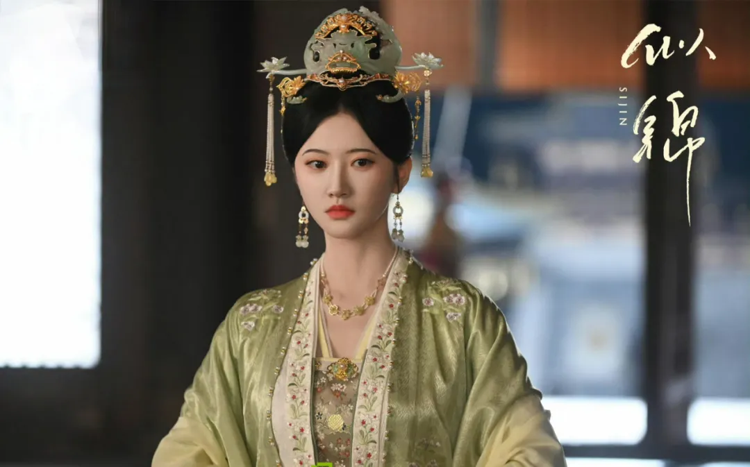 《似锦》里景甜的绿色古装造型同样端庄大气,精致的服饰和头饰一看就很贵气,整体看起来就身份不凡,倒是很衬景甜人间富贵花的气质。