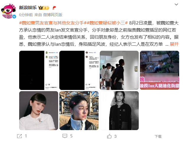 事件很快又有新进展,若盈和Ian双双发文,宣布正式分手,那么之前内涵魏如萱插足,不就是坐实了男方脚踏两只船吗?而魏如萱疑似被设局当小三。