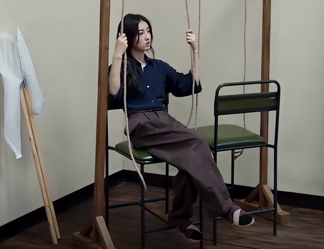 因为过于无聊,张子枫来到客厅的椅子上坐了一会,看起来寂寞又孤独。