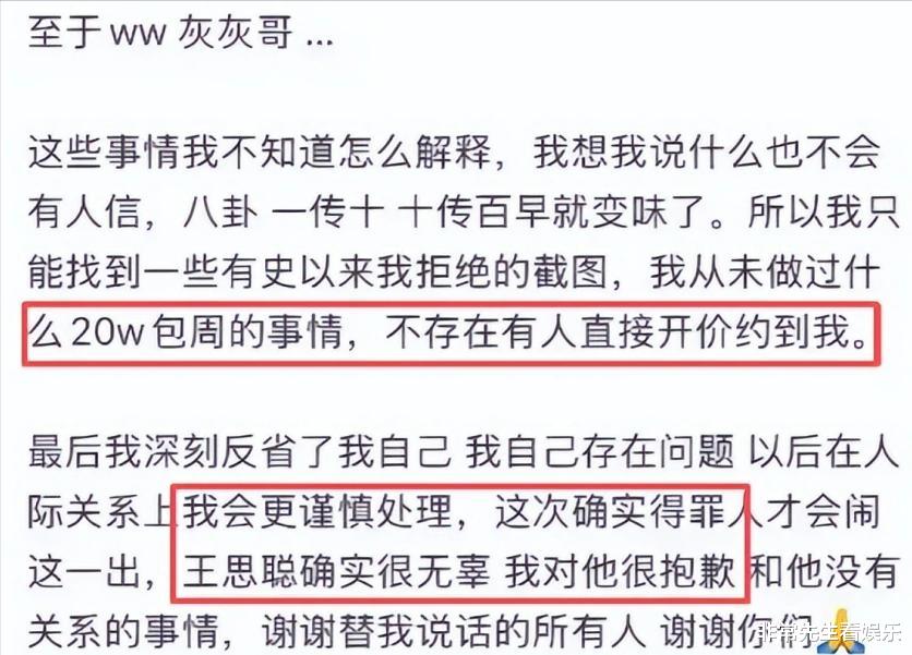 没想到这解释反而让王思聪更火大,觉得她不仅污蔑自己名声,还“又当又立”,之后灰男和王思聪都把她拉黑了。