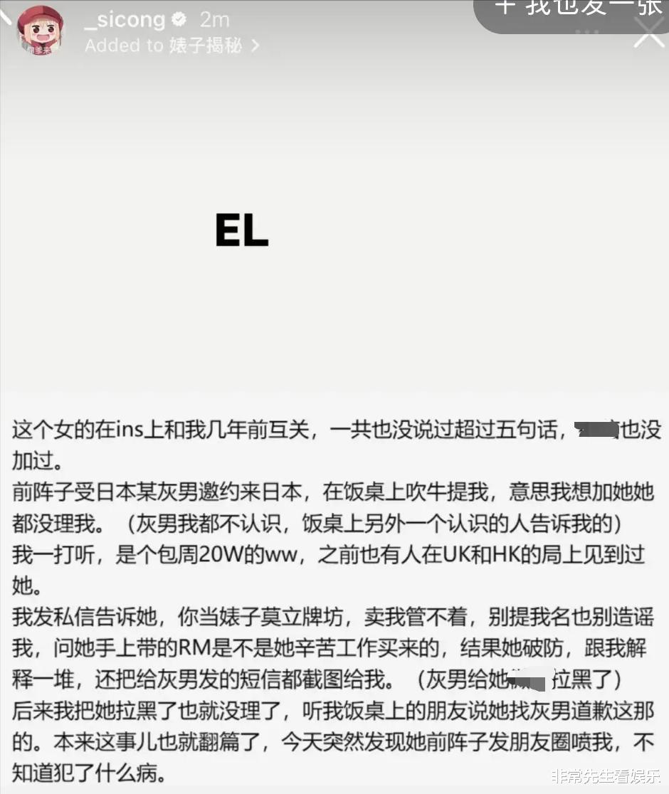 他深夜在ins上突然开火,指名道姓地说某个女网红是“包周20W的外围女”,一点情面都没留。