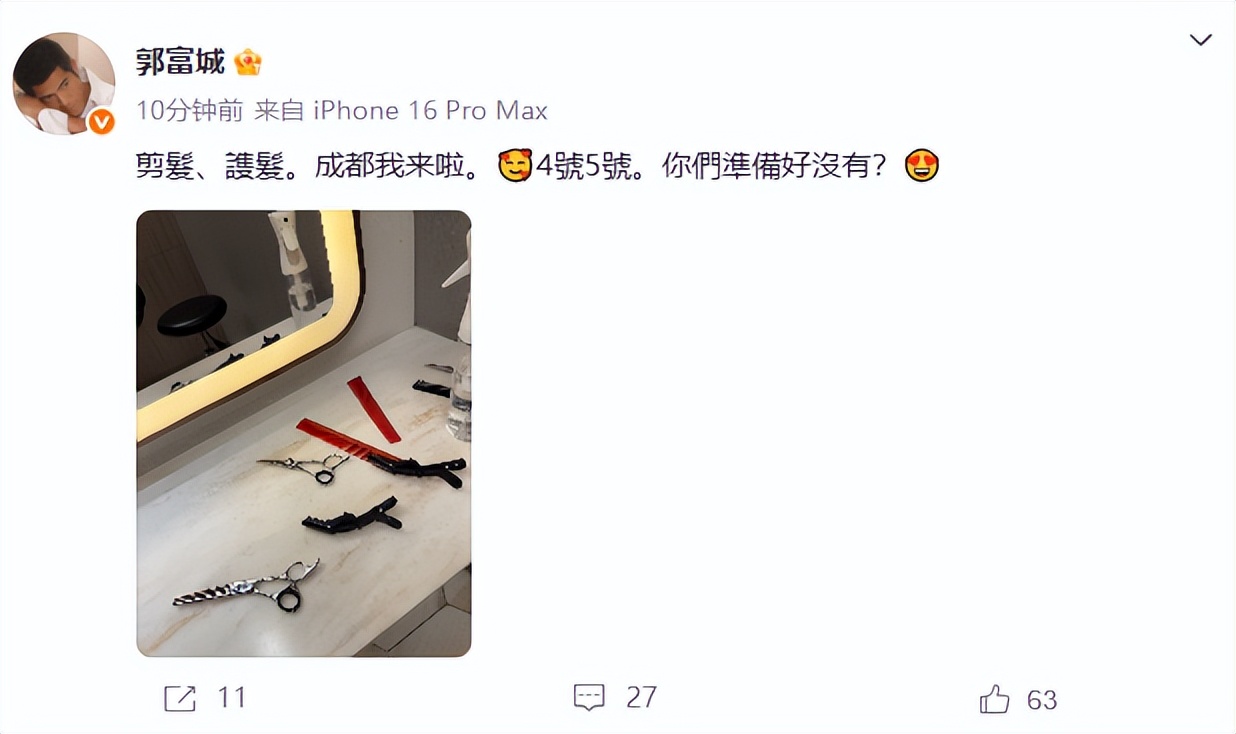 而在港媒爆料的半个小时后,郭富城发文透露自己要到成都演出,文中没有谈及方媛生娃一事,估计是不想惊动记者,影响方媛出院的进度吧。