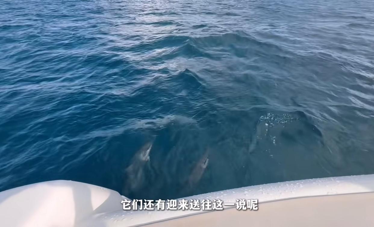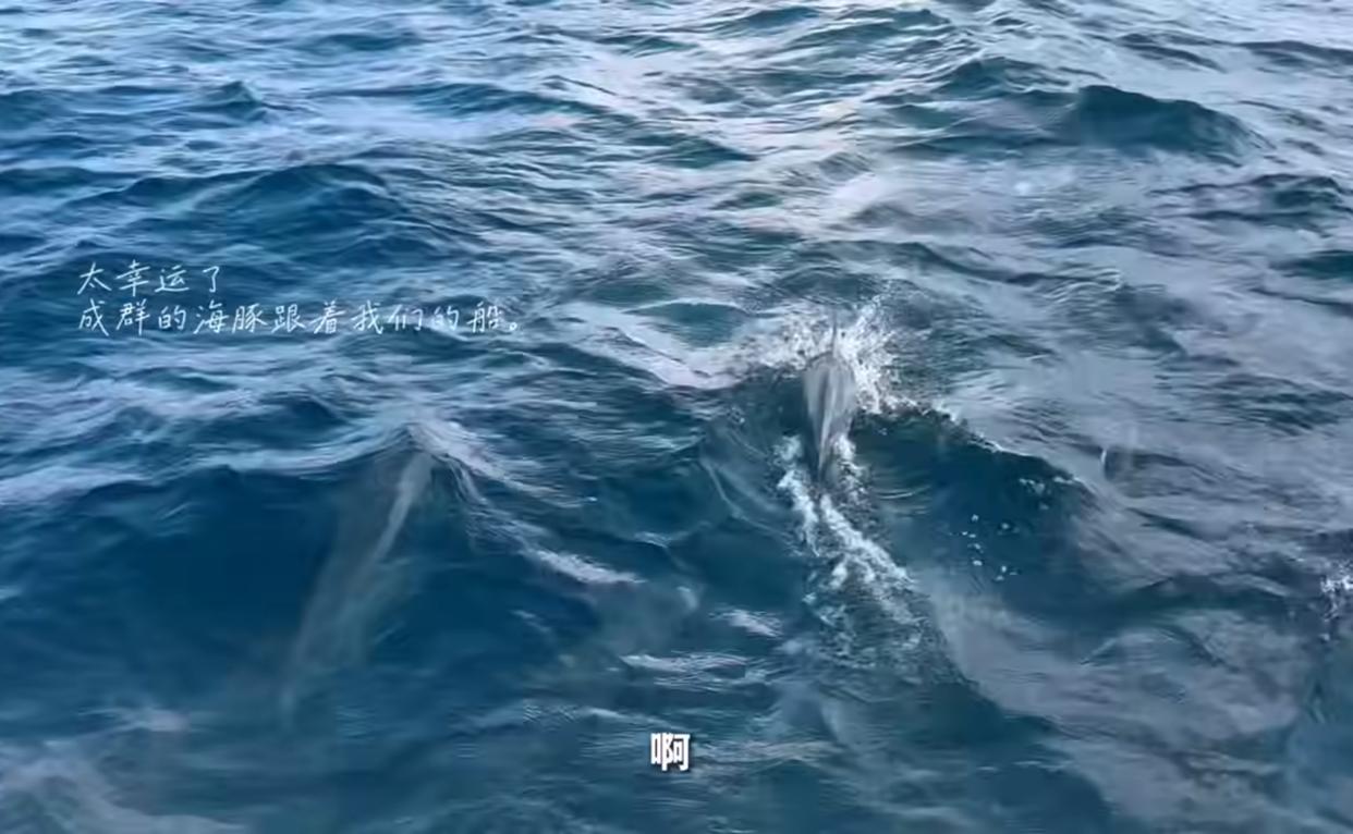 当天关晓彤的运气特别好,出海途中遇到好多海豚“伴行”,它们在水中极速前进,仿佛是在迎接游客的到来。
