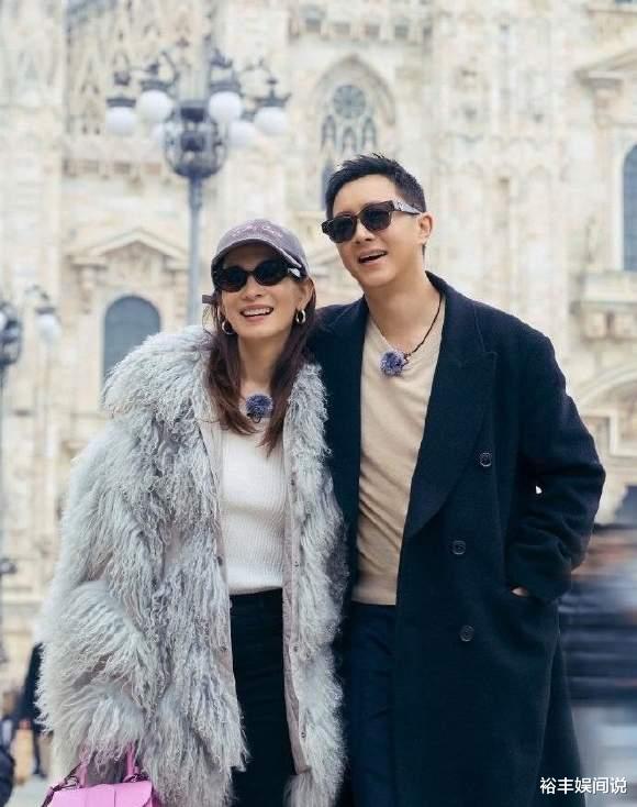 见的卢靖姗薇露唇齿,眼神中透着满满的爱意,身形的变化几乎不大。