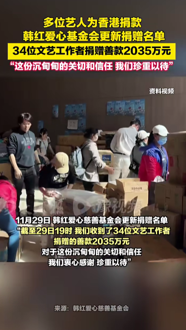 韩红基金会发布关于支援香港的公告:捐赠1000万元人民币。这笔资金将重点用于因灾受影响的老、弱、病、残等弱势群体的过渡安置工作。并且,基金会表示会根据救灾进展持续提供后续支持,切实帮助受灾同胞缓解当前困境,助力重建家园。
