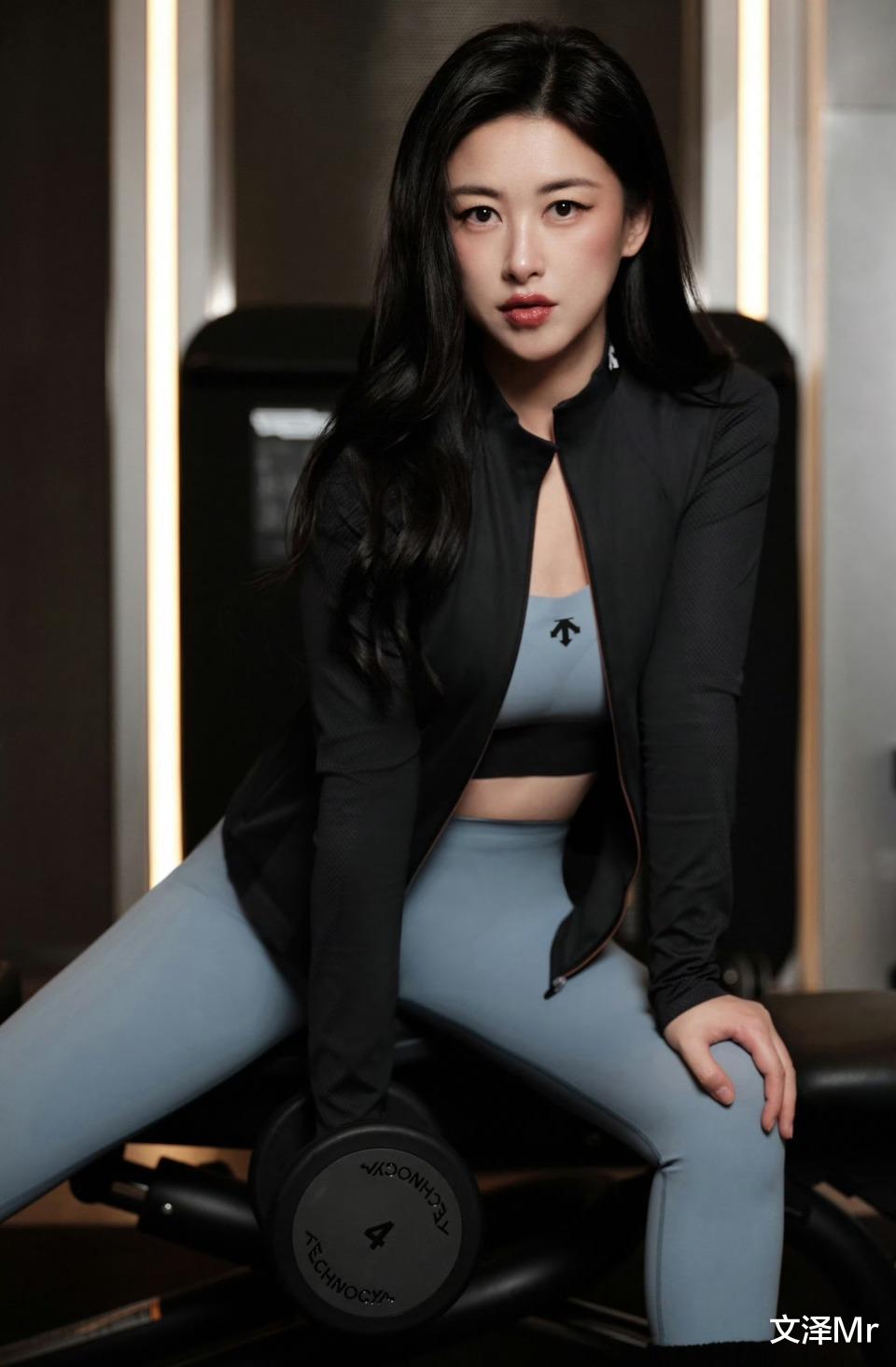 第一张照片中的朱珠,展现了她对运动时尚的独特理解。黑色运动夹克修身而不束缚,内搭的浅蓝灰运动套装在功能性与美学之间找到完美平衡。她手持4公斤哑铃,动作标准而优雅。她的健身哲学从不追求极致的肌肉线条,而是塑造匀称健康的体态。这种理念也体现在她的运动穿搭中——既满足运动需求,又不失时尚感。