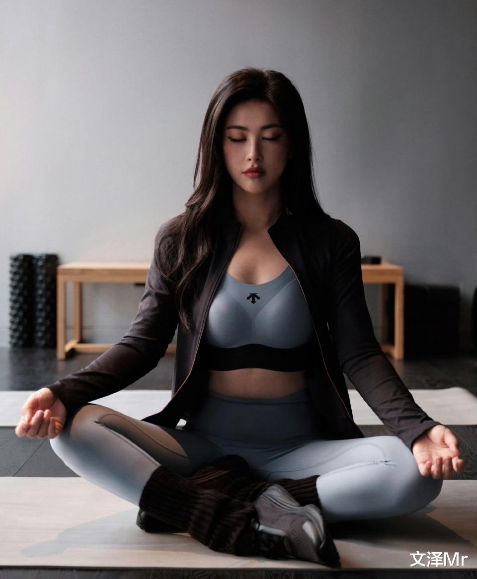 从力量训练到静态冥想,朱珠在第二张照片中展示了她的另一面。浅蓝色运动内衣与瑜伽裤的搭配,外加深色开衫的随意包裹,她以莲花坐姿安静冥想。双眼轻闭,手结禅定印,仿佛与世隔绝。朱珠曾分享过:“运动不仅是身体的锻炼,更是心灵的修行。”这张照片完美诠释了她的这一理念——在动与静之间找到平衡,在力量与柔韧之间发现自我。