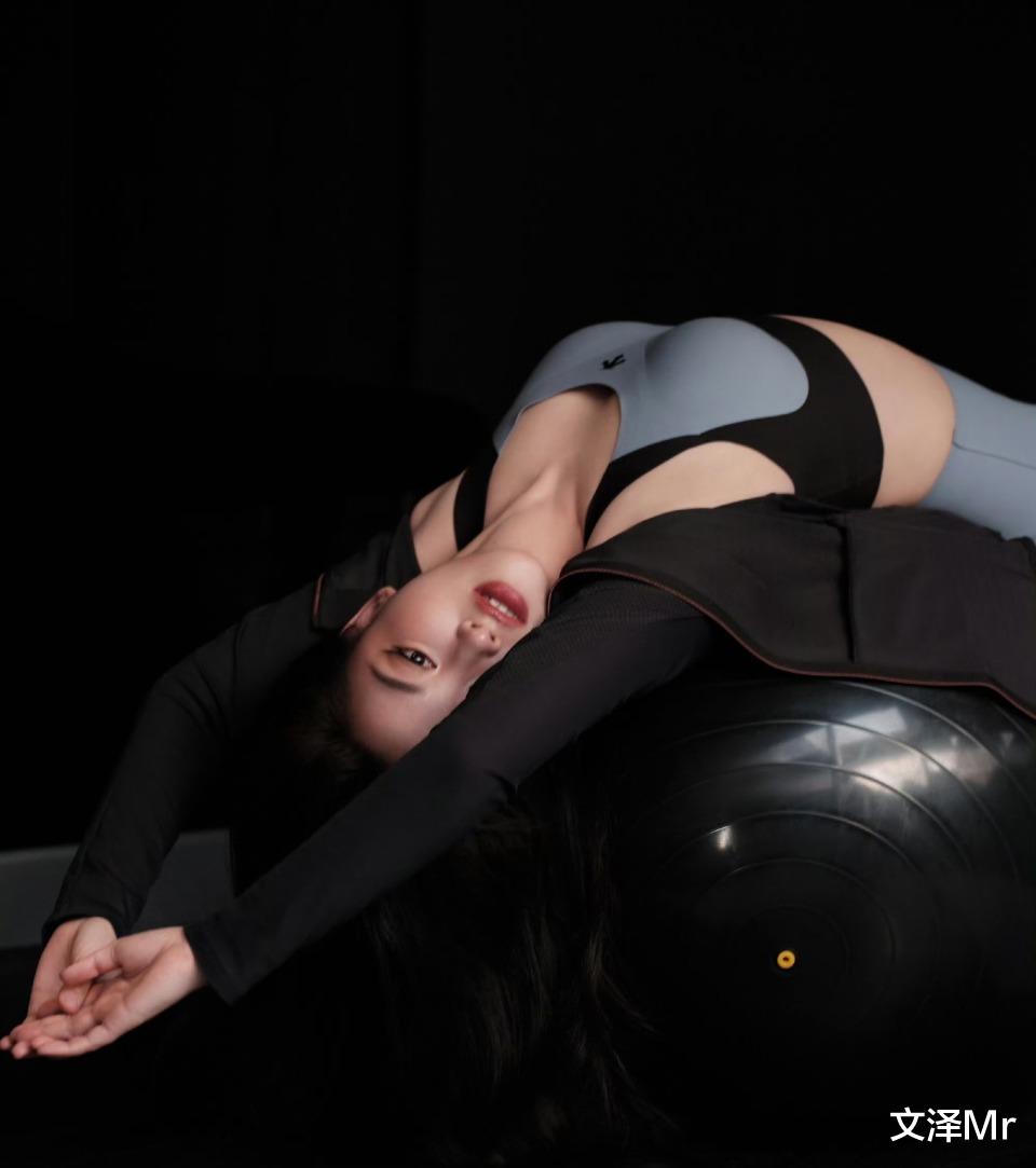 朱珠进行瑜伽动作的身影令人印象深刻。浅灰色运动套装外搭黑色外套,她坐在瑜伽垫上,双腿盘起,右手撑地,左手向上高高伸展。身体后仰的曲线优雅而有力,展现出卓越的身体柔韧性。