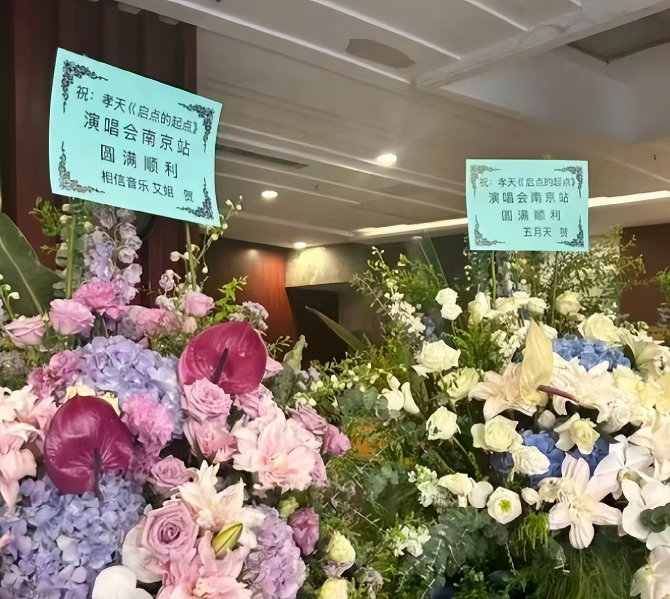 很快,有粉丝在社交媒体上发布图片,在今年7月,朱孝天于南京举办名为《启点的起点》演唱会时,“相信音乐艾姐”还向其赠送过花篮。朱孝天的那场演唱会,288元至880元的门票最终打折至99元,最终到场观众仍不足2000人。