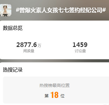 此事引发不少网友关注,“曾爆火素人女孩七七签约经纪公司”等相关词条登上微博热搜榜。