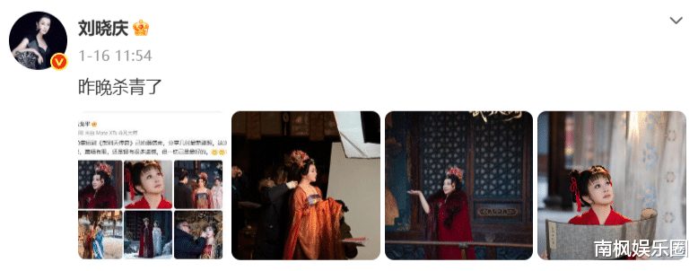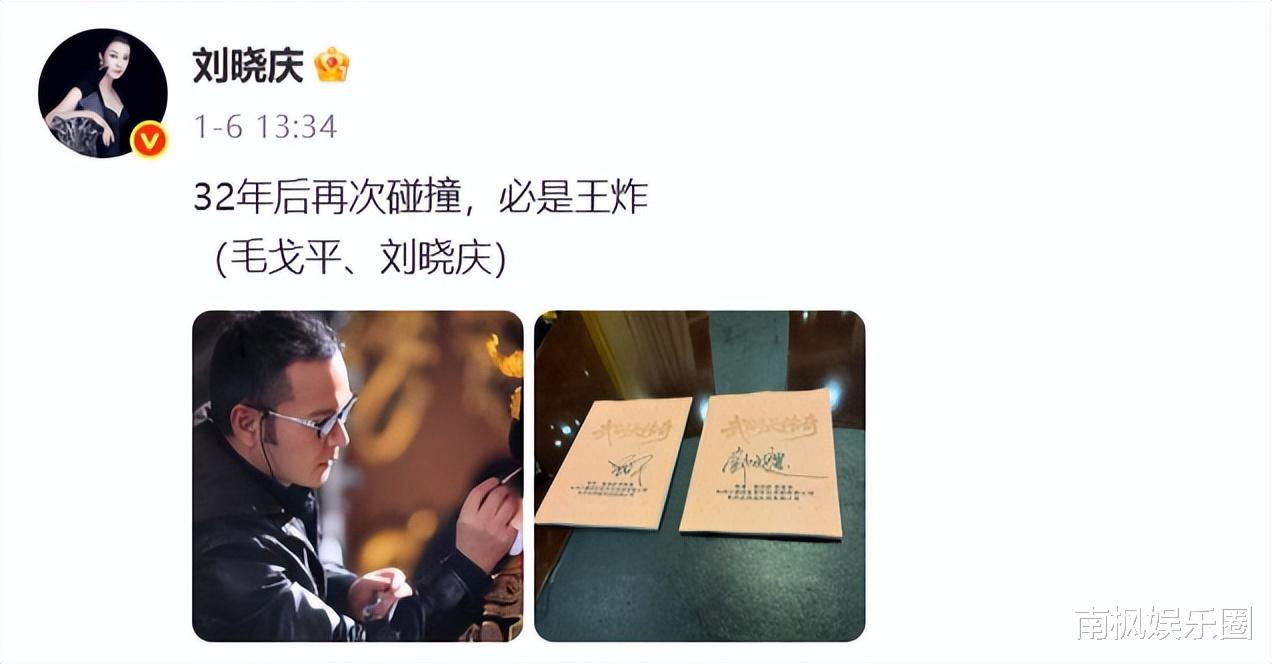 一开始,刘晓庆只是发了条博文表示32年后,再次与毛戈平老师合作。