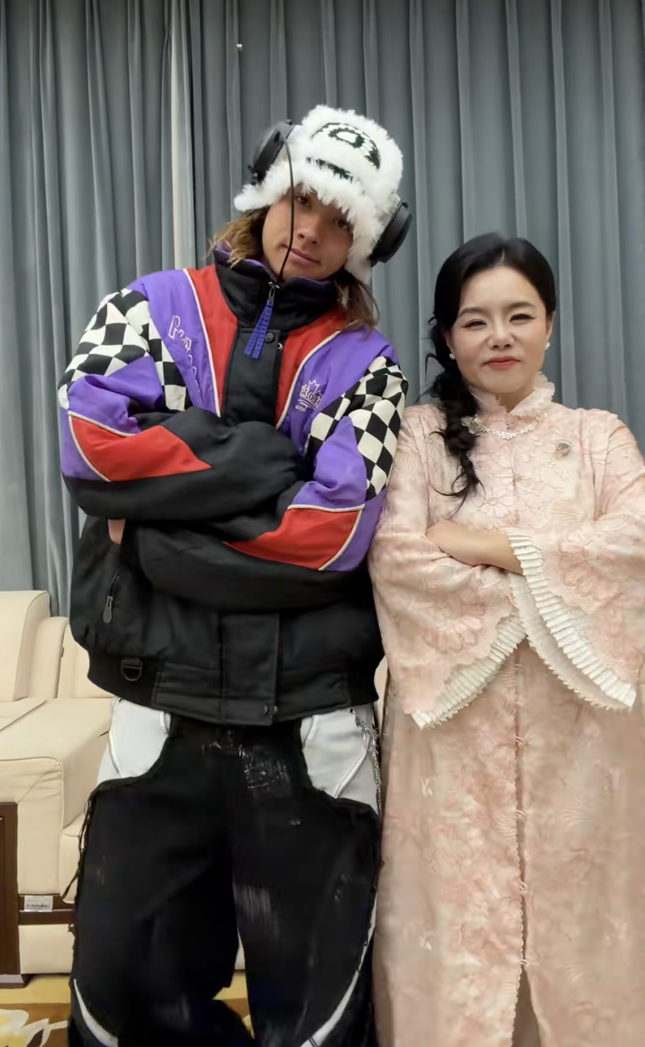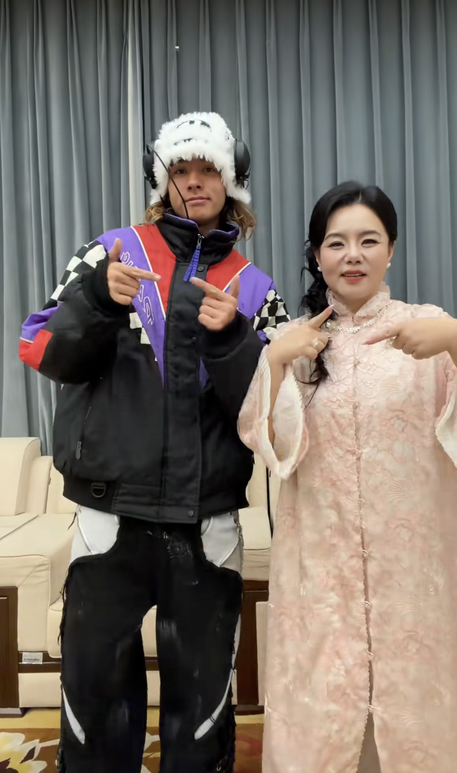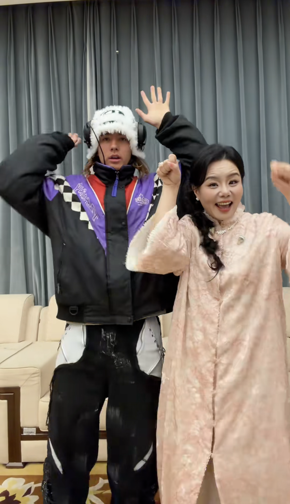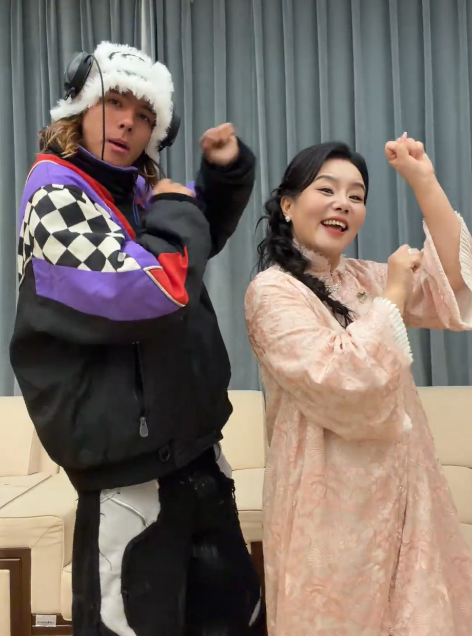 视频里中的雅酷,个头比龚琳娜高了大半个头,穿着色彩鲜艳的运动服,头戴白色毛茸茸的帽子,看上去非常酷。