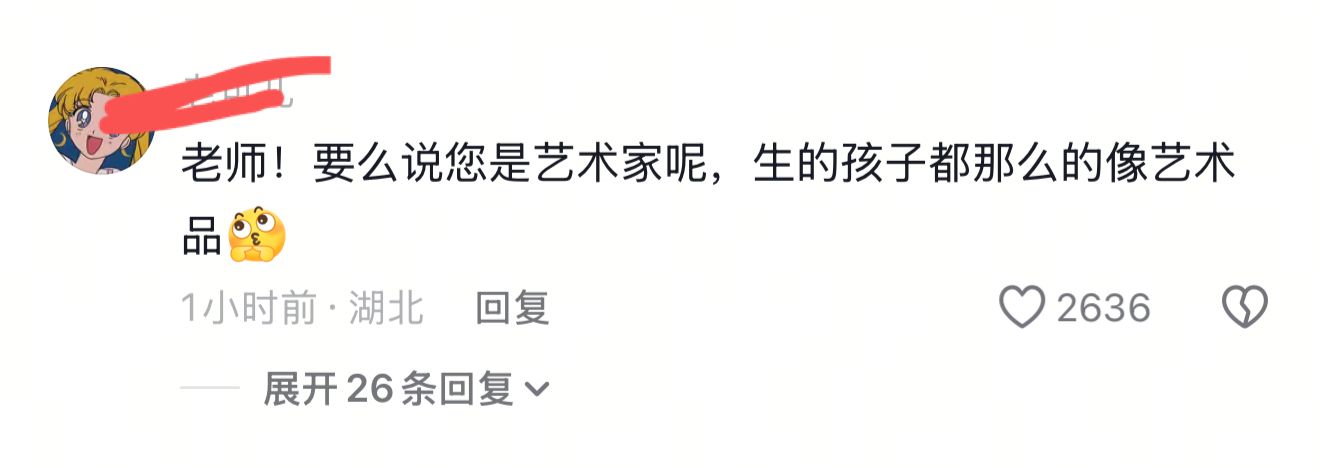 更有情商高的网友说:要么说您是艺术家呢,生的孩子都那么像艺术品。
