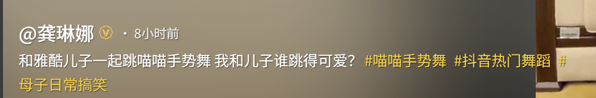 就在大家好奇雅酷长什么样的时候,龚琳娜在社交平台分享了一支与儿子一起跳“喵喵”手势舞的视频。