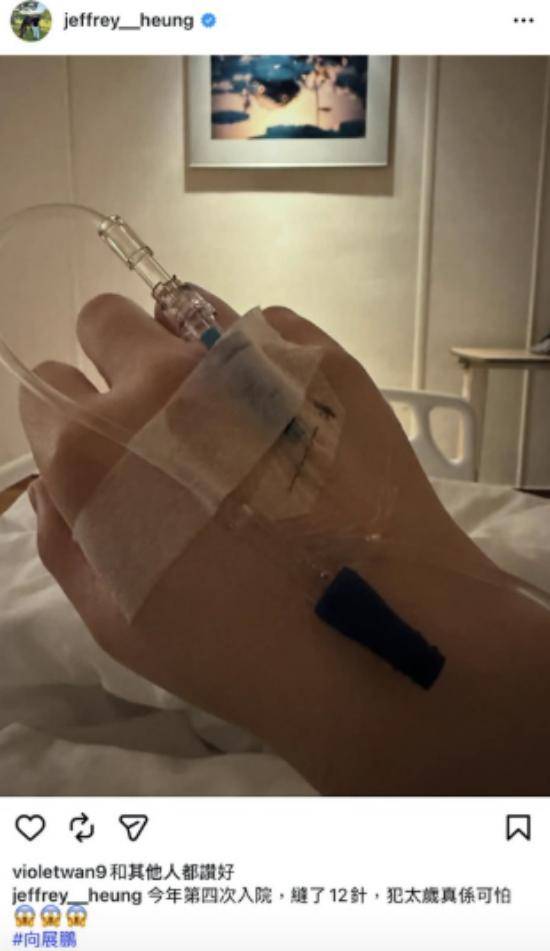 但具体此次因为什么住院治疗,向展鹏并未向外透露,只是在配文中感叹:“这是他今年第四次入院治疗,此次还縫了12针,感叹犯太岁真的很可怕。”