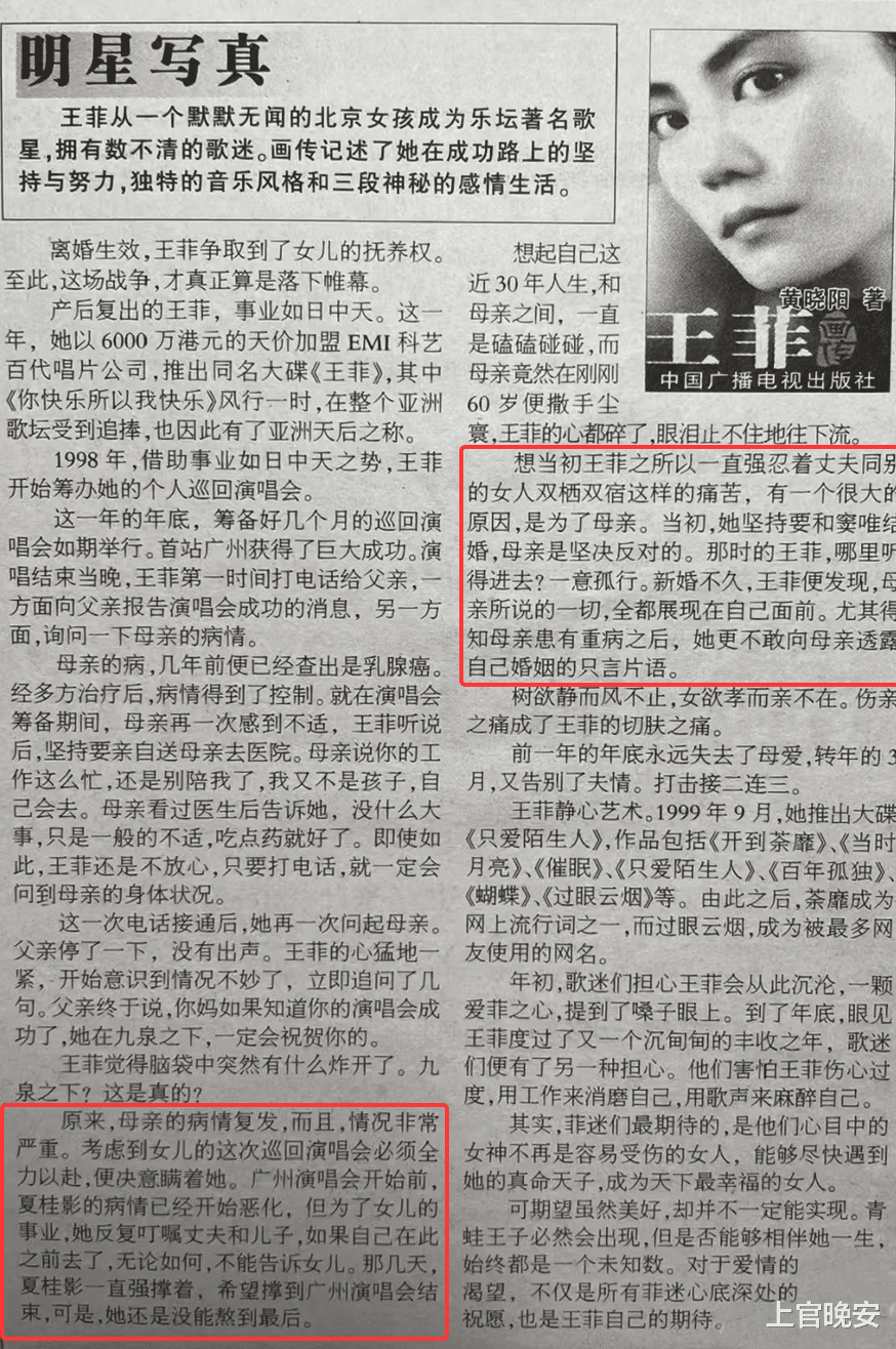 网上关于夏桂影的资料不多,王菲也鲜少提及家人,不过还是能从为数不多的资料以及夏桂影生前好友兼同事黑妮的讲述中了解到她的为人。