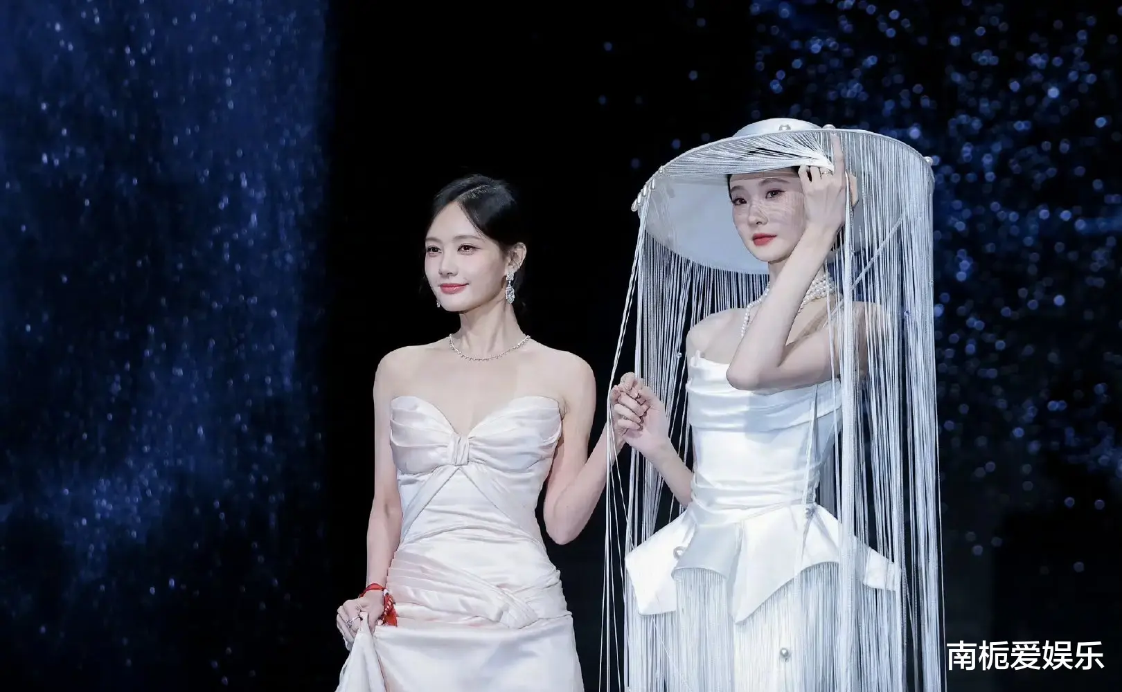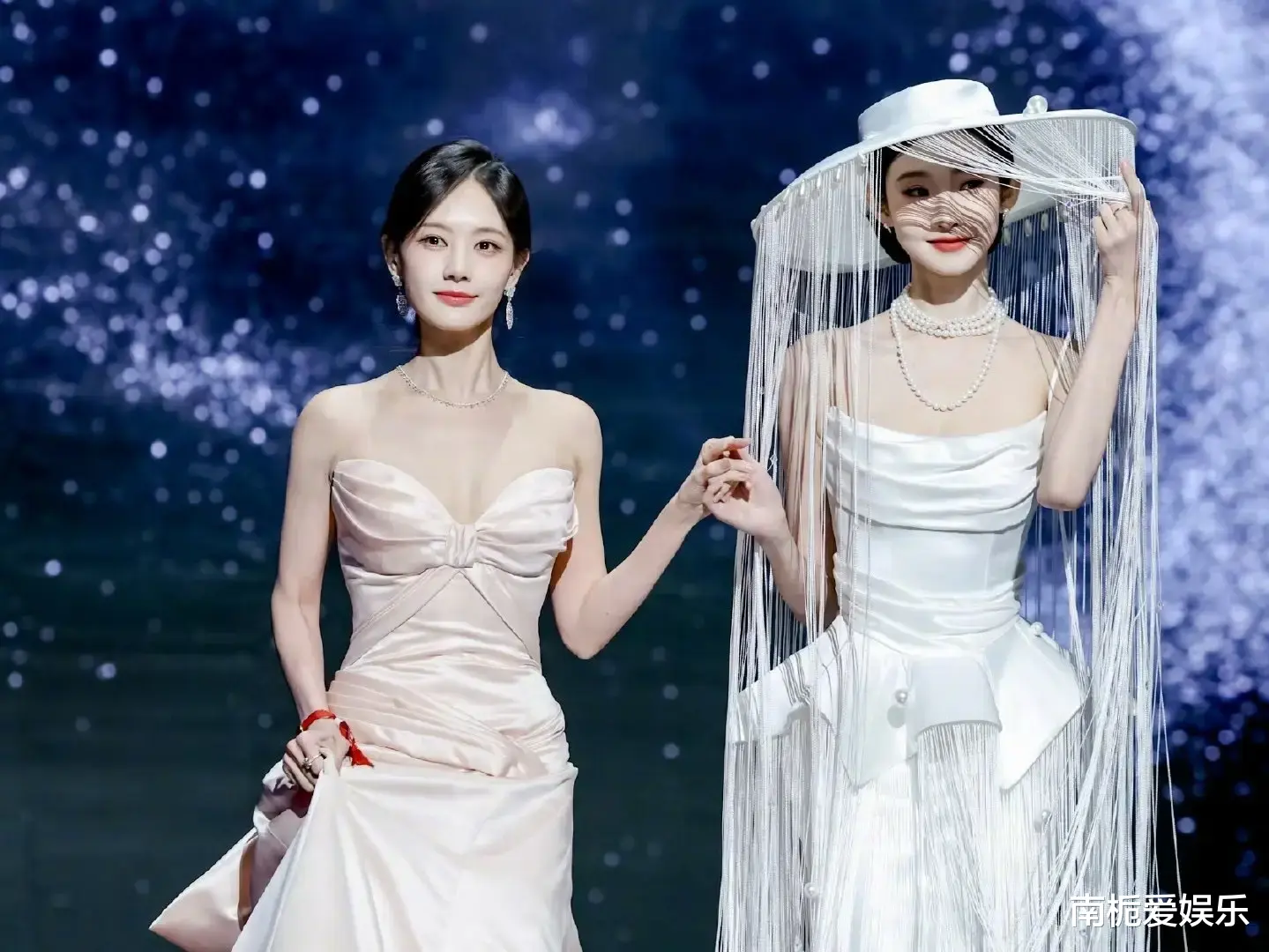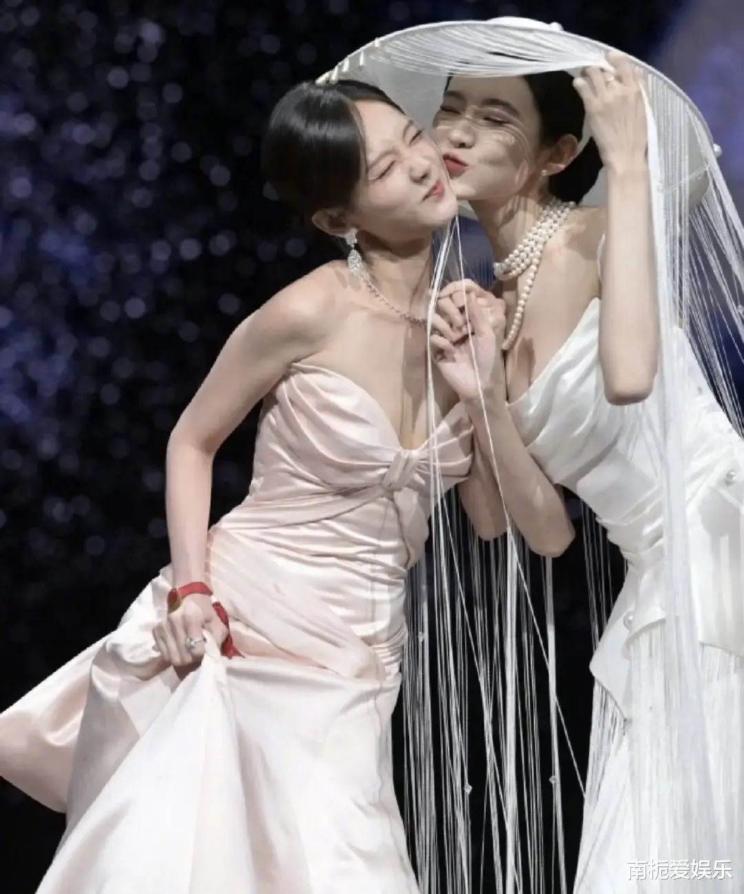 作为综艺《女子推理社》中公认的“对抗路姐妹”,李一桐与张艺凡在节目中便以真实、逗趣的互动圈粉无数。此次同台,她们延续了节目中的亲密氛围,全程牵手前行,不时低头私语、整理彼此裙摆,画面温馨自然。为配合摄影师构图,两人多次调整站位与角度,正是在一次侧身交流时,张艺凡的流苏斗笠帽投下阴影,恰好覆盖在李一桐面部,强光勾勒出双唇逼近的轮廓,成就了这张“神图”。