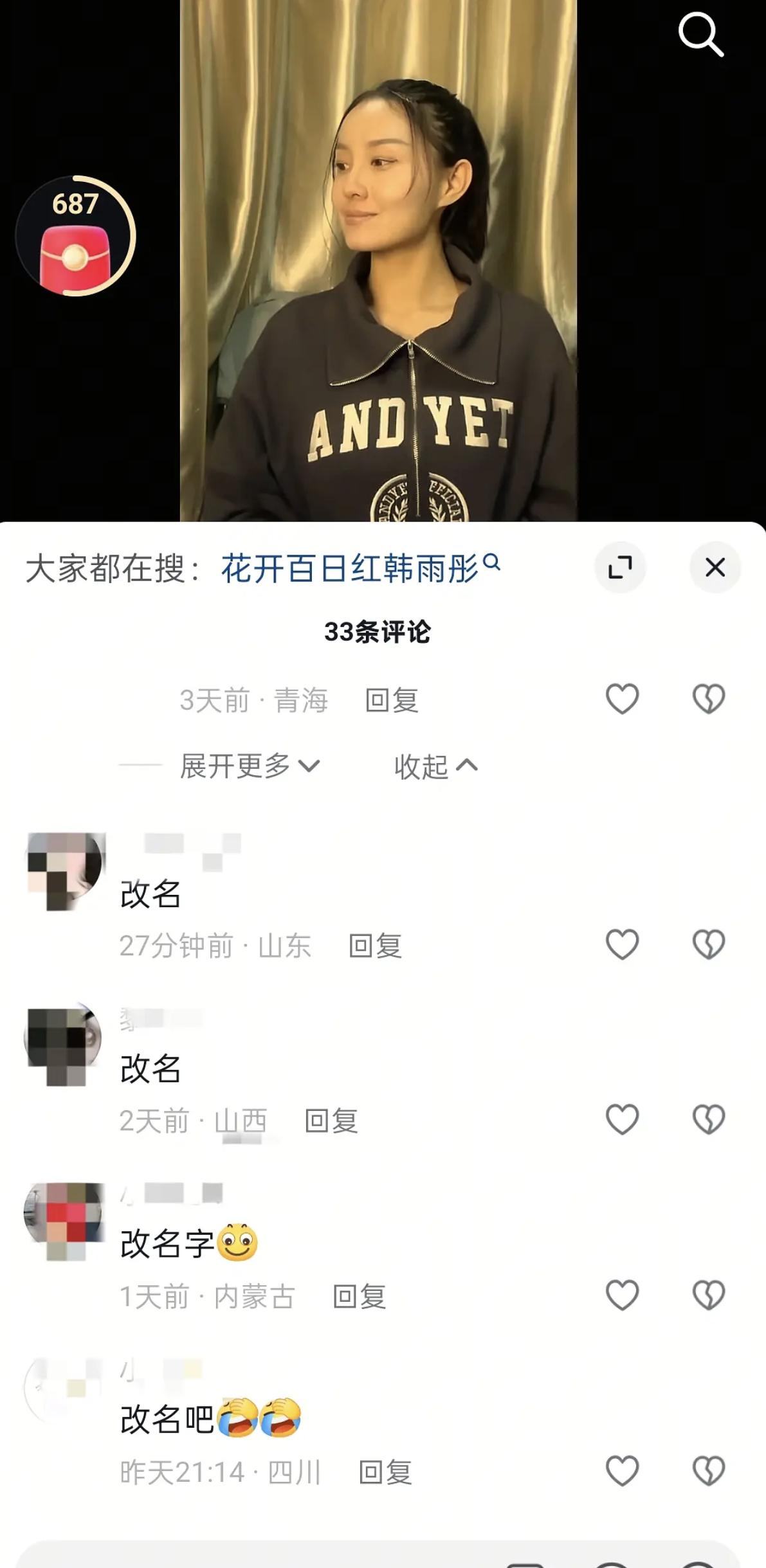但令她万万没有想到的是,在她发布了一支宣传视频后,因为与听花岛的艺人韩雨彤同名而被听花岛韩雨彤的粉丝“逼着”改名。