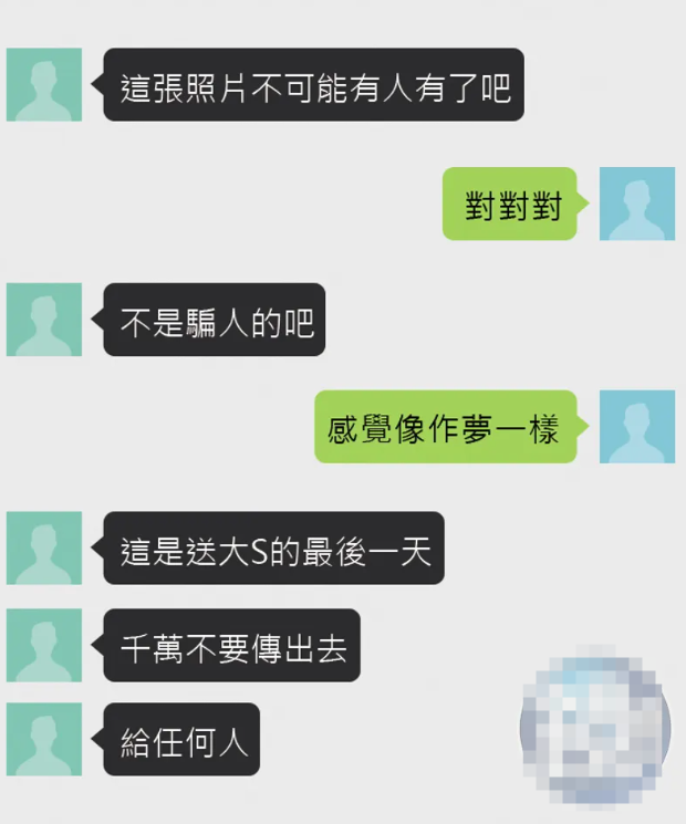为了自证身份,许雅钧还发布了一张大S出殡的现场照片,女粉丝随后在群里公布聊天截图引发热议。