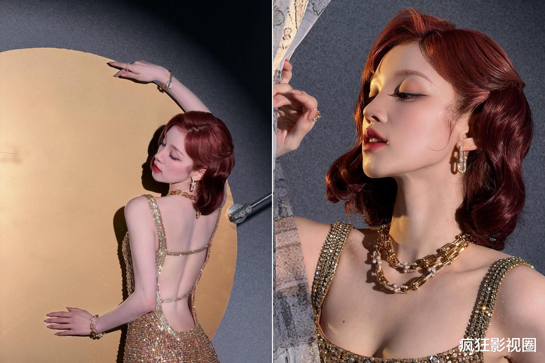 年轻又有气质,任何发色都让宋雨琦驾轻就熟。金色亮片长裙通过贴身剪裁勾勒背部曲线,健康紧致的肌肉线条令人赞不绝口,完全打破了年轻女孩白幼瘦审美范式。