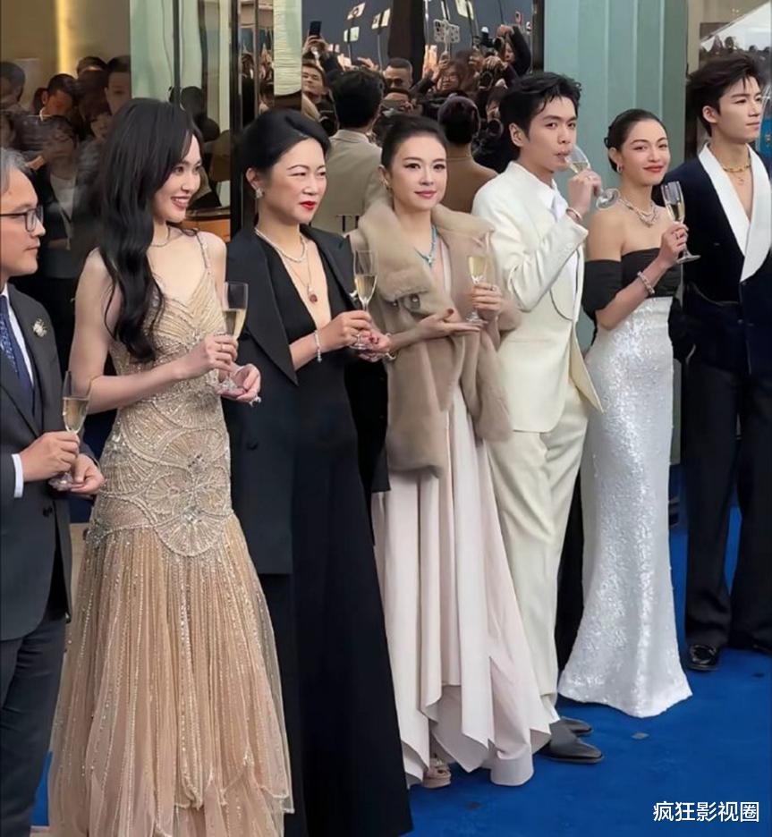 为了缓解尴尬局面,品牌高管想出妙计,主动站在了C位,章子怡与唐嫣分居两侧成双C位。