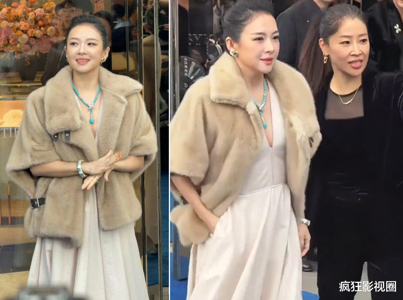 近日久未露面的章子怡在北京出席珠宝品牌旗舰店的开幕活动。当天,她身穿白色深V长裙,外搭驼色皮草大衣,并佩戴绿松石项链亮相,贵气十足。