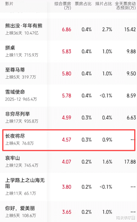 甚至还不如春节上映的《熊出没》大电影。