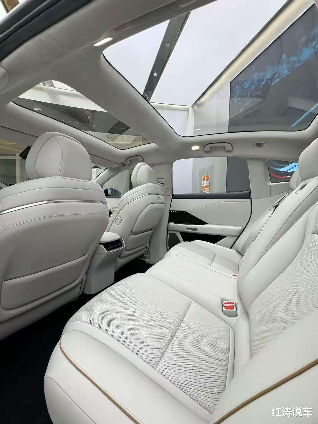得益于中大型轿车的尺寸,丰田铂智7的车内空间充足,身高1.78米的乘客坐在后排可以轻松翘起二郎腿,前排座椅是电动调节,具有加热、通风等功能,副驾是零重力座椅,带有电动腿托,车内还提供了车载冰箱、办公小桌板、后排手机无线充电面板等。