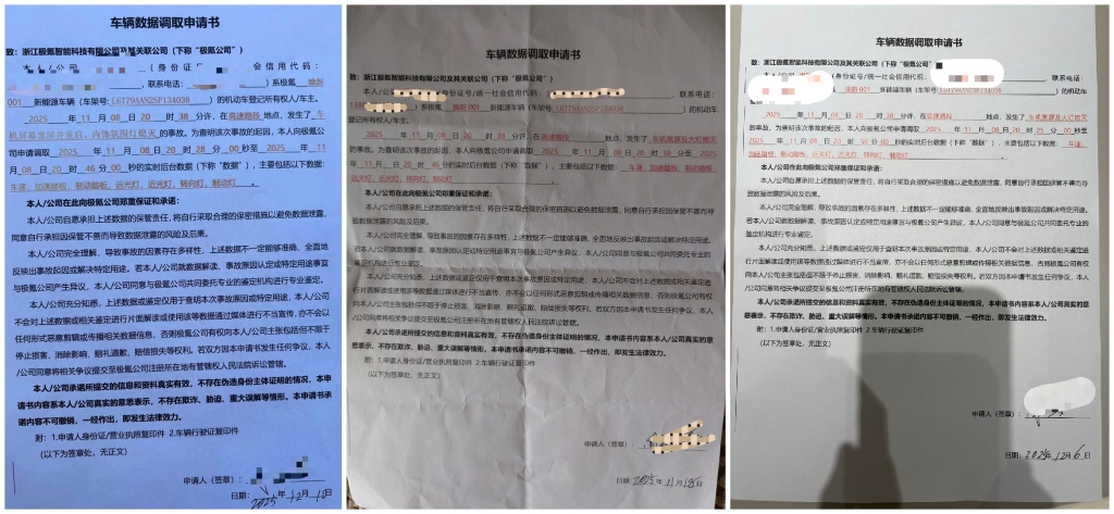 根据周女士提供的聊天记录,极氪工作人员对行车记录仪视频丢失的解释为:车辆系统版本较低,AIScrash导致DVR视频录制异常。周女士称,事发后她多次要求门店提供相关数据,并先后三次签署车辆数据调取申请书,但至今未拿到任何书面数据报告。她曾要求退车退款,但被以车辆故障仅系软件问题拒绝。