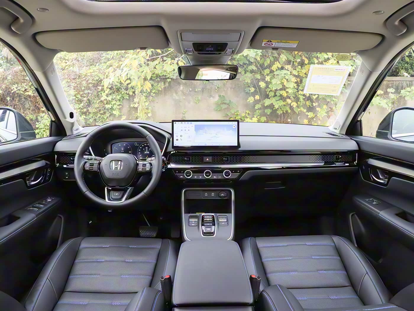 进入车内,车内采用环抱式座舱设计,中控上方采用软质材料包裹,搭配细腻缝线工艺提升基础质感,标配10.2英寸全液晶仪表与12.3英寸悬浮式中控屏。搭载最新Honda CONNECT 4.0系统,支持5G网络、AR实景导航及连续语音对话,无线CarPlay/Android Auto互联提升使用便利性。空间表现延续“空间魔术师”优势,5座7座灵活适配。依托2701mm轴距,车内乘坐空间十分充裕,以175cm身高乘客为例,前排座椅调至合适位置后,头部剩余一拳半;后排腿部空间可达3拳,头部一拳半,地台几乎纯平,中间乘客无需岔开腿,乘坐舒适性出色。
