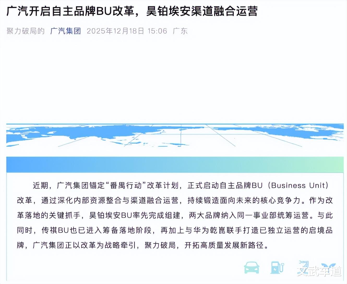 而在销量持续下滑的情况下,广汽集团在今年也进行了多次战略调整,来适应市场的变化,并试图扭转颓势。日前,广汽集团宣布锚定“番禺行动”改革计划,正式启动自主品牌BU(Business Unit)改革,昊铂埃安BU率先完成组建,两大品牌纳入同一事业部统筹运营。此外,传祺BU也已进入筹备落地阶段,广汽与华为乾崑联手打造的启境品牌则会独立运营。