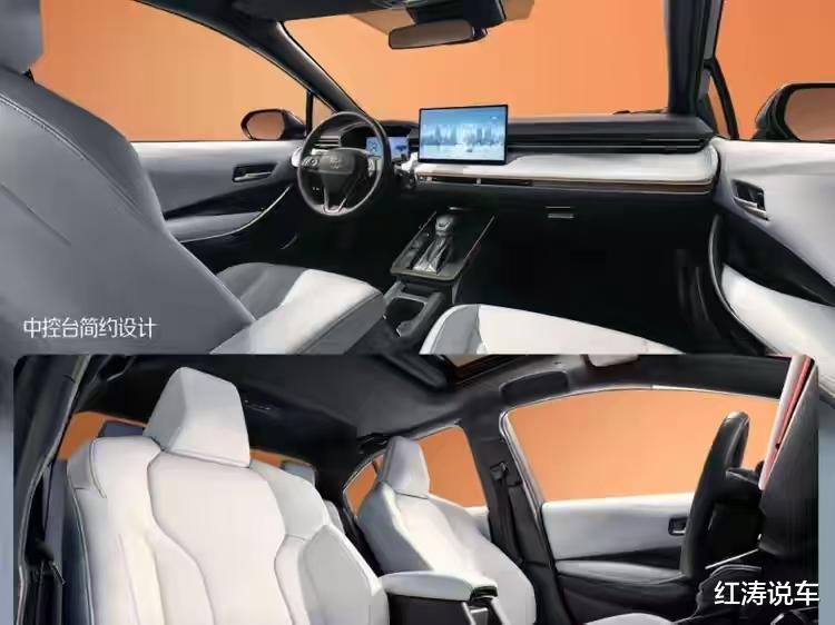 丰田雷凌L的内饰采用家族最新设计语言,中控台布局简洁且有层次,车内使用更多的软性材质覆盖,中间位置是贯穿样式的空调出风口,配备了多功能方向盘、高配车型为内嵌式8.8英寸液晶仪表和12.9英寸悬浮式中控大屏,低配车型是10.25英寸中控屏。