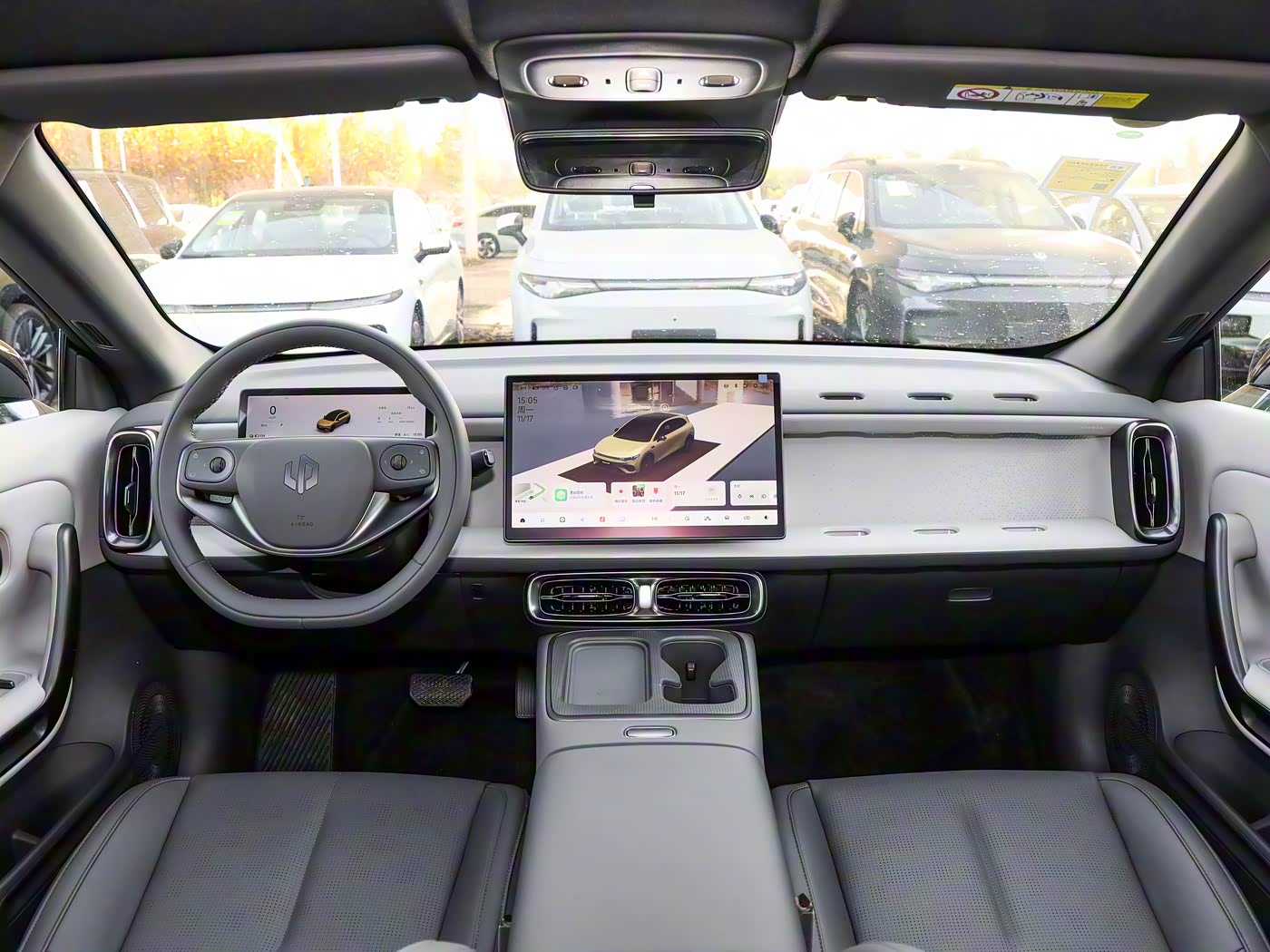 进入车内,零跑Lafa5在运动基调中融入了实用与科技感。内饰采用真皮与仿麂皮拼接座椅(Pro/Max版标配),搭配哑光枪灰饰条,质感出色,且所有材质均通过OEKO-TEX环保认证,新车几乎无异味,兼顾家庭用户需求。科技方面配备了8.8英寸全液晶仪表+14.6英寸2.5K中控屏的双屏组合,显示清晰抗强光,中低配搭载高通骁龙8155P芯片,Max版升级为8295P芯片,操作流畅无卡顿。空间实用性上,2735mm轴距带来了充裕的乘坐空间,身高180cm的乘客坐进后排,头部仍有一拳余量,腿部空间近两拳,中间地台近乎纯平,三人同行也不拥挤。