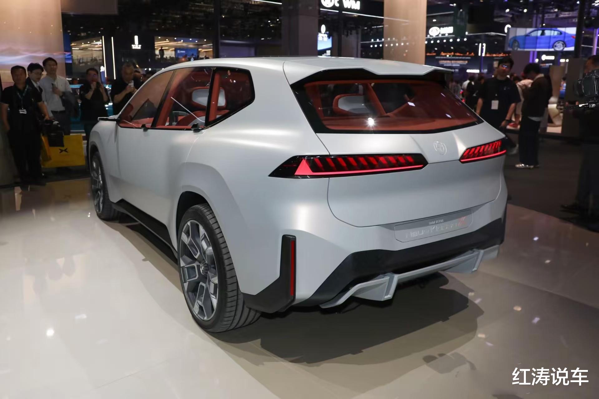 BMW车标左右硬朗的筋线向着后方机盖延伸,同样是宝马经典设计的传承,而双肾格栅两侧使用了熏黑透明饰板与熏黑大灯形成一体式效果,不仅样式很酷炫,而且眼神中流露出犀利和凶狠,前包围设置有双排横幅式的通风开口,车身轮廓简洁饱满,线条流畅,前、后翼子板位置的隆起营造出一定的肌肉感,车门把手采用和宝马Vision Neue Klasse X概念车相同策略,被设计在了车窗下边框上,可改善经过车身的气流流向,减小风阻。