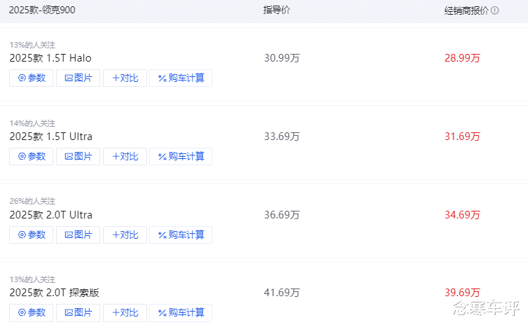 而领克900是定位大型SUV,指导价30.99万-41.68万。
