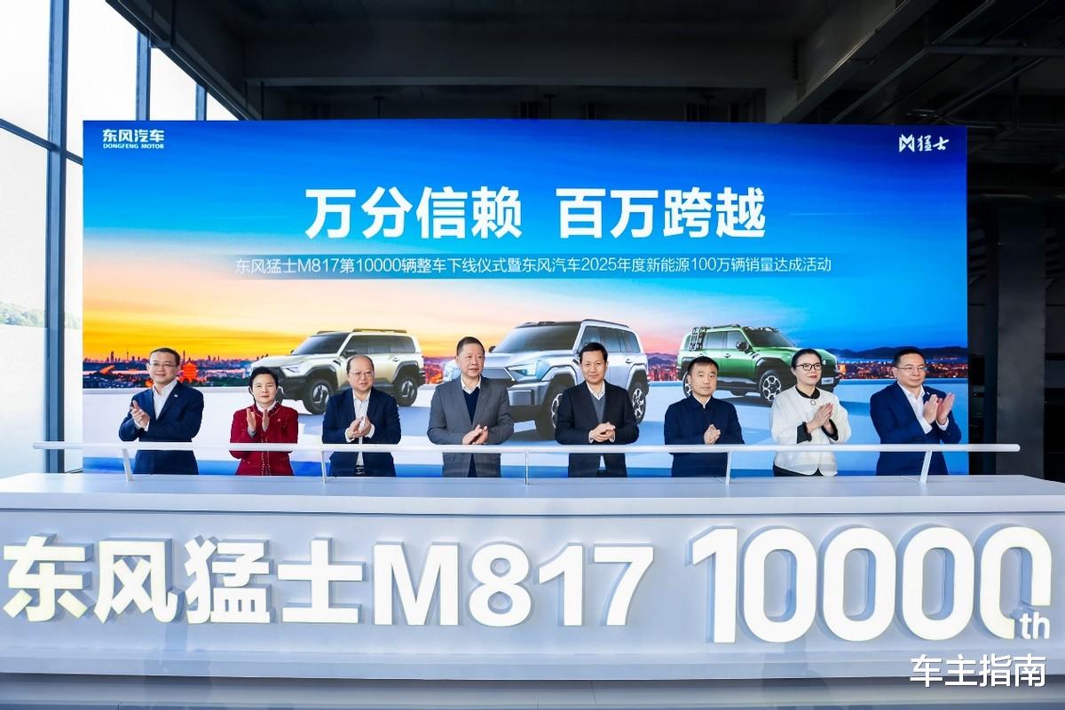 12月26日,东风猛士M817迎来第10000辆整车的正式下线。这一重要里程碑,与东风汽车在2025年高质量达成年度新能源汽车百万销量的整体跨越交相辉映,共同标志着东风汽车在新能源转型与品牌向上进程中,迈入了规模与质量协同发展的新阶段。对于猛士汽车而言,猛士M817万辆目标的达成,是其在智能越野赛道上的一次跨越,同时也吹响了新征程的号角。站上发展新台阶,猛士汽车锚定“智能越野”新蓝海,将全面开启“登峰行动”,通过“组织、产品、技术、生态”四个维度的系统变革,向着“豪华智能越野第一品牌”的目标全速攀登。