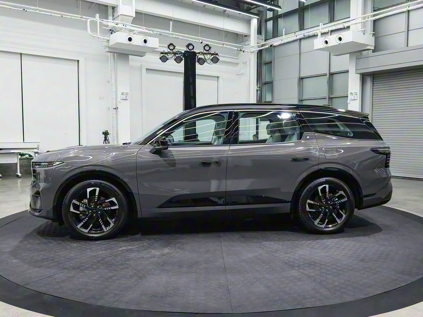 再来看车身侧面部分,车身侧面线条流畅而饱满,从车头延伸至车尾的腰线勾勒出力量感,搭配大尺寸轮毂,比例协调且动感十足。车身尺寸为5000×1961×1773mm,轴距达2950mm,为内部空间打下坚实基础。悬浮式车顶设计通过黑化立柱实现,增强了时尚感。细节上,全系标配车顶行李架,方便长途自驾时装载露营装备;电动尾门从豪华版开始配备,搬运重物时更省力。