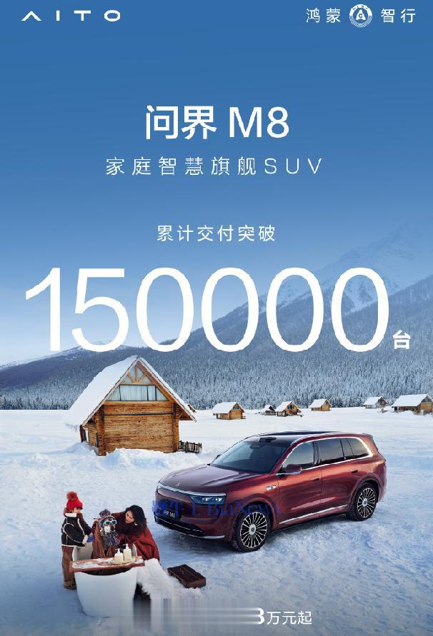 电车界12月29日消息,据博主“我鸿”消息,问界M8上市8个月交付突破15万辆,获四十万级销冠。