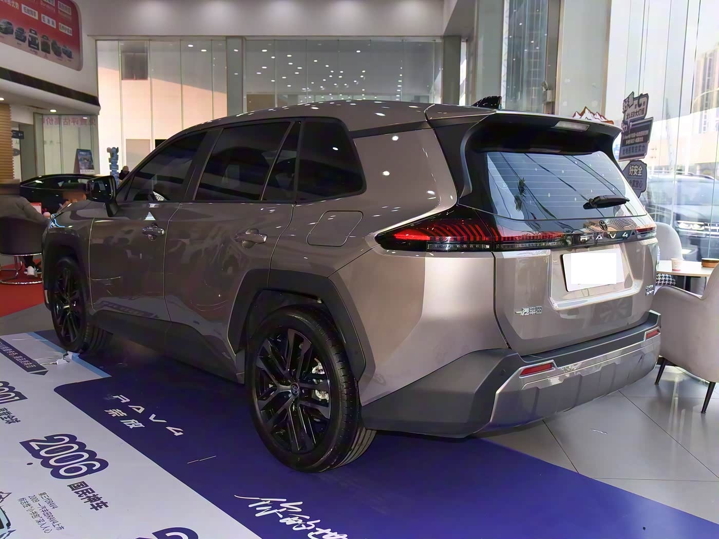 再来看车身侧面部分,车身侧面延续RAV4家族经典的硬朗轮廓,同时通过细节优化提升质感。起伏的型面设计与前后外扩的轮拱,营造出饱满的肌肉线条,轮眉与侧裙边的黑色饰件包围,不仅防剐蹭实用性拉满,更强化了越野属性。车身尺寸方面,新车保持紧凑型SUV主流水平,配合合理的轴距分配,为车内空间奠定基础。值得一提的是,Rugged系列配备19英寸熏黑全地形轮毂,采用轻量化铝合金材质,既降低簧下质量提升操控,又通过特殊纹路增强非铺装路面抓地力。