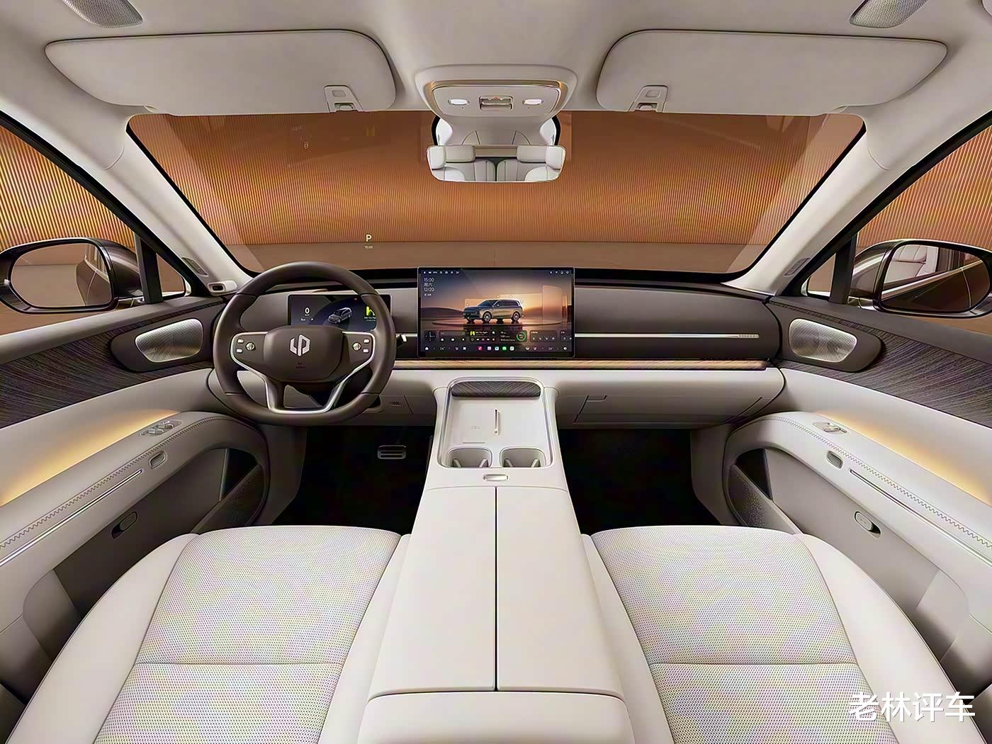 内饰方面,零跑D19配备了10.25英寸液晶仪表盘和17.3英寸中控屏幕以及60英寸AR-HUD投屏,还采用了电子怀挡,前排地台上配有双手机无线充电面板。