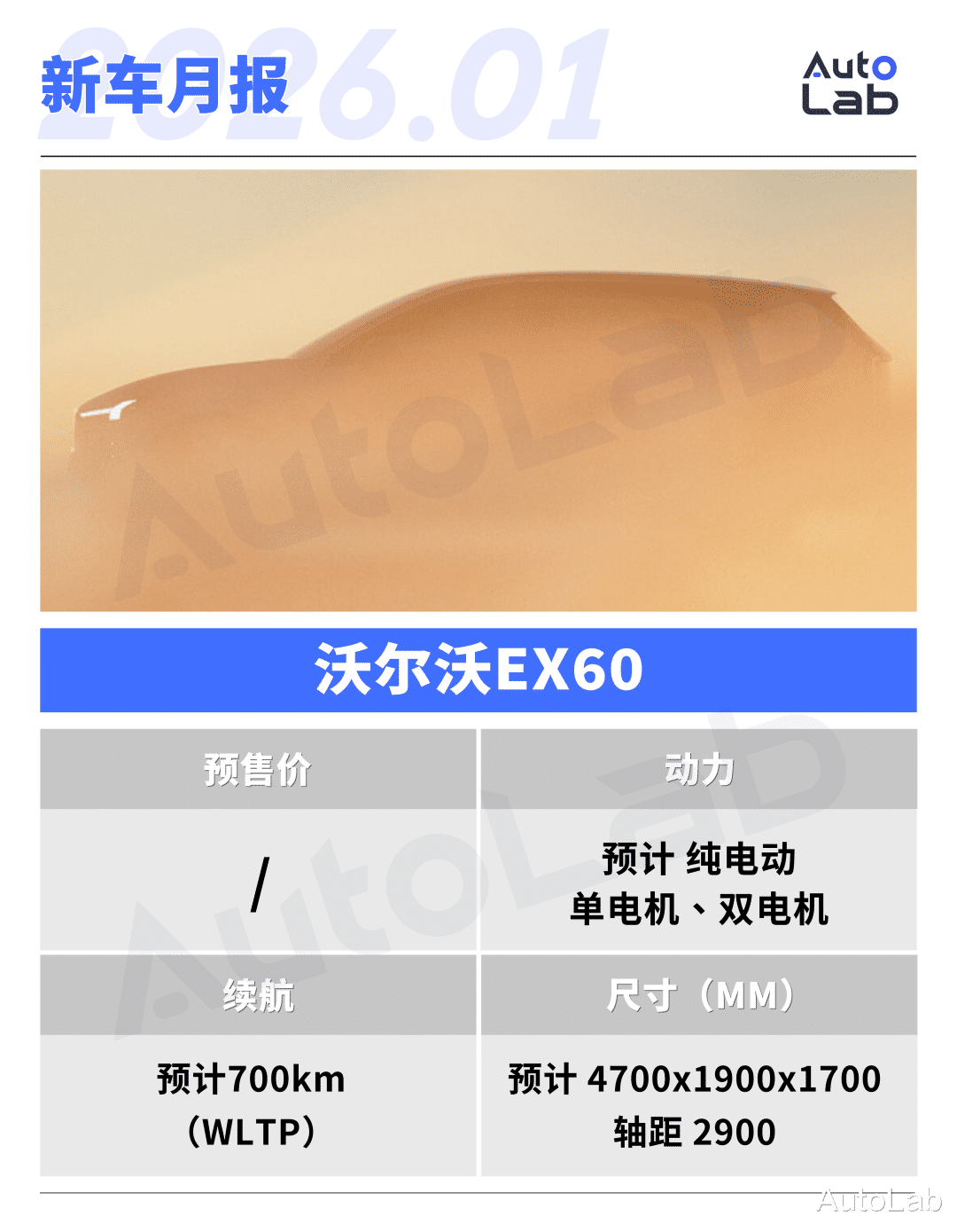 根据预告,EX60的WLTP工况续航可超过700km,预计CLTC工况下续航有望达到800-900km。